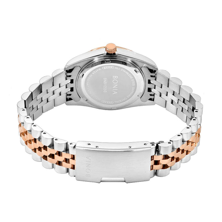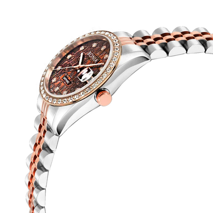 36mm IP silver stainless steel case and IP rose gold bezel embellished with fine crystals