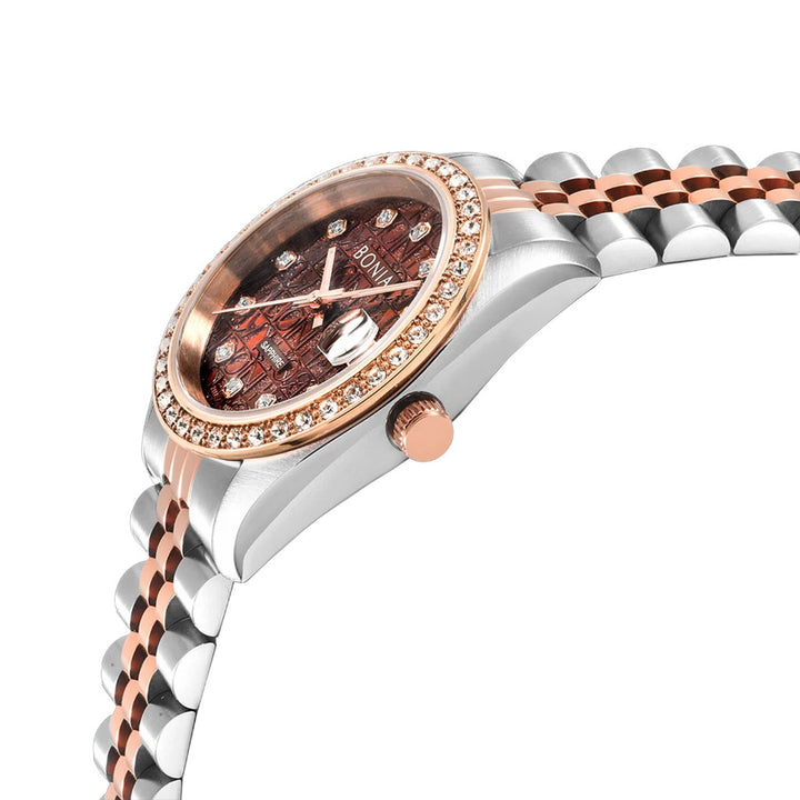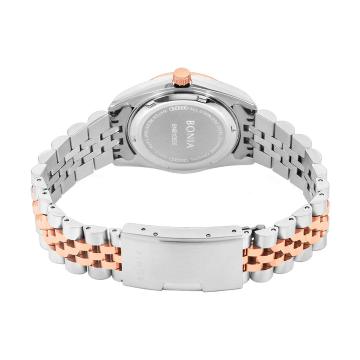 Specification BRAND Bonia COLLECTION Noble GENDER Women CASE SIZE 32mm CASE MATERIAL Stainless Steel DIAL COLOR Brown Monogram Printed STRAP MATERIAL Stainless Steel STRAP COLOR IP Silver IP Rose Gold WATER...