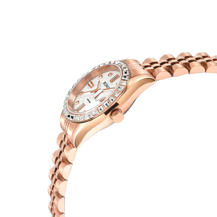 Bonia Women Elegance BNB10553-4257S - Is elegantly and luxury enhance with a top ring and hour indexes set with fine crystals. The collection is beautifully placed on the wrist of the stylish woman, whether for office wear or as a valuable companion during evening events.