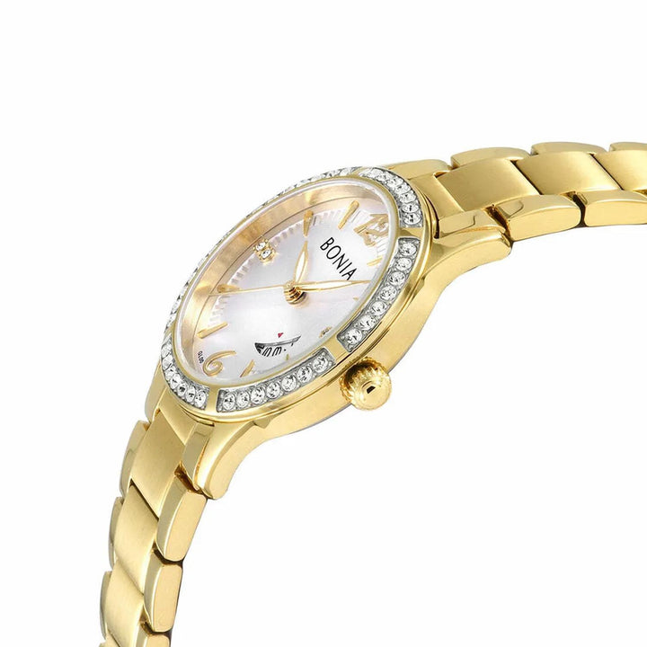 32mm IP gold stainless steel case and bezel embellished with 42pcs fine crystals