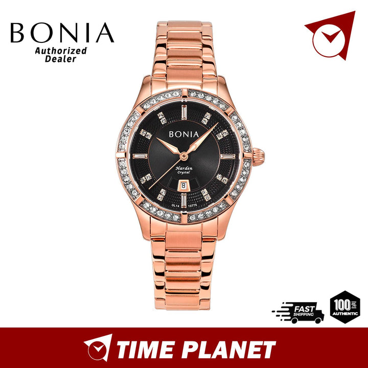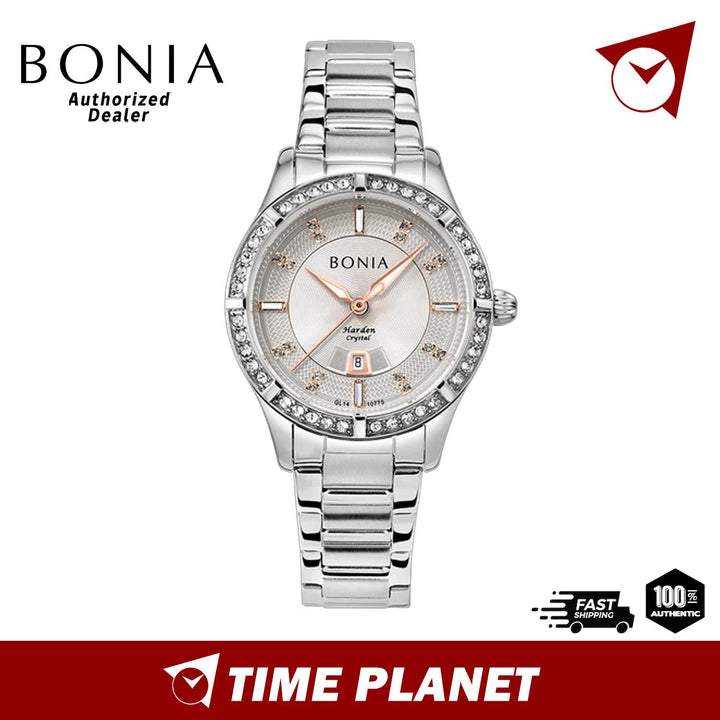 Specification BRAND Bonia GENDER Women CASE SIZE 32.5mm CASE MATERIAL Stainless Steel STRAP MATERIAL Stainless Steel WATER RESISTANCE 5 ATM MOVEMENT Japanese Quartz FEATURES Harden Crystal