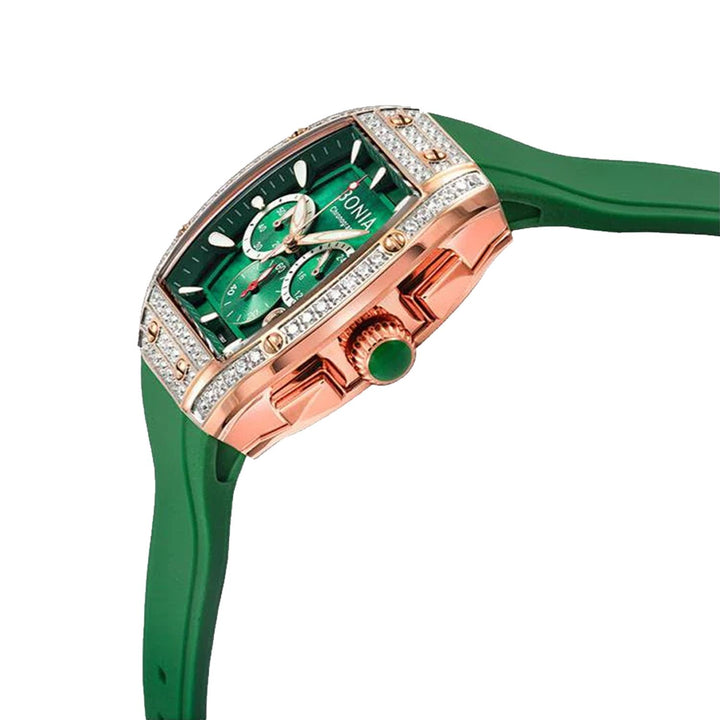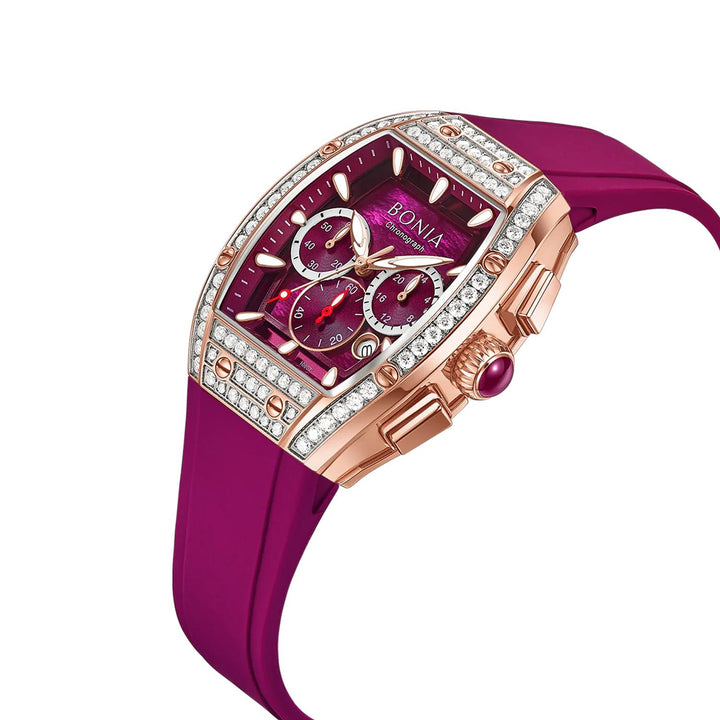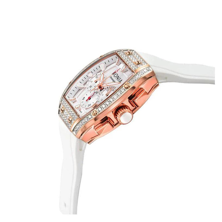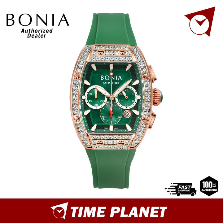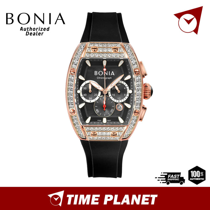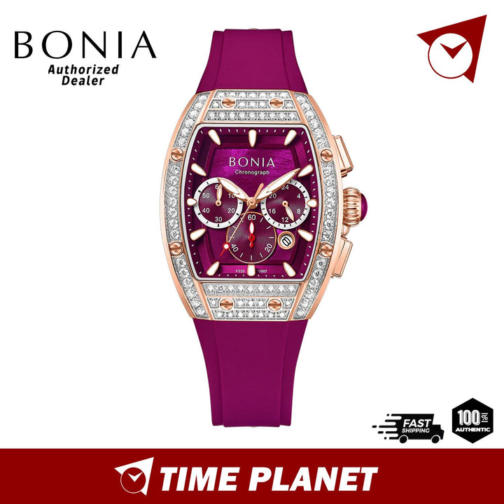 Specification BRAND Bonia GENDER Women CASE SIZE 34mm x 43.7mm CASE MATERIAL Stainless Steel STRAP MATERIAL Silicone WATER RESISTANCE 3 ATM MOVEMENT Japanese Quartz FEATURES Bezel Embellished With 76pcs Fine Crystals...