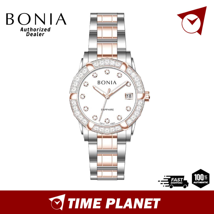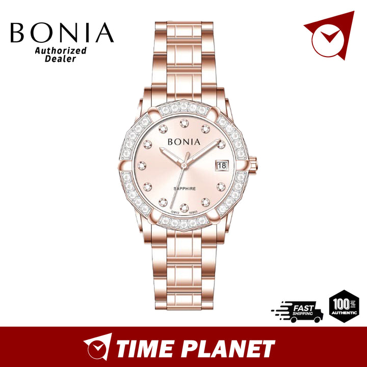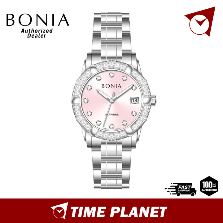 33mm stainless steel case and bezel embellished with fine crystals Dial with hands and fine crystals set as hour markers 16mm stainless steel bracelet Japanese precision quartz movement 3 hands with...