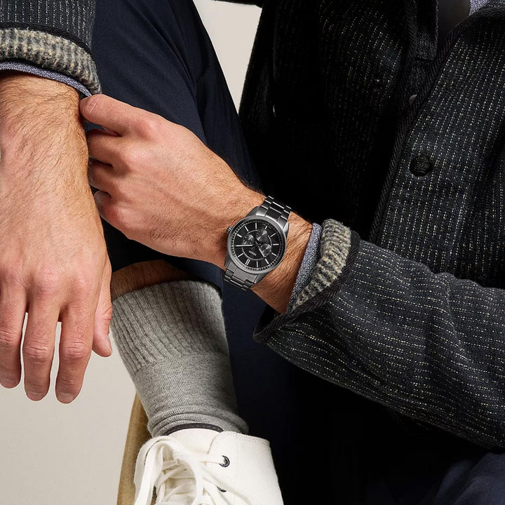 Sku: FS6136 Case Size: 42 mm Movement: Quartz Multifunction Platform: PEARSON Strap Material: Stainless Steel Strap Colour: Gunmetal Case Water Resistance: 5 ATM Case Material: Stainless Steel Case Colour: Gunmetal Dial Colour: Black Strap Fashion Colour: Smoke Interchangeable Compatibility: 22 mm Strap Width: 22...