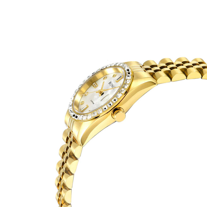 Bonia Women Elegance BNB10553-3257S is elegantly and luxury enhance with a crystals sparkling bezel. The watch with a mother of pearl dial is a gem for a stylish woman, a beautiful accessories for office wear or during evening events.