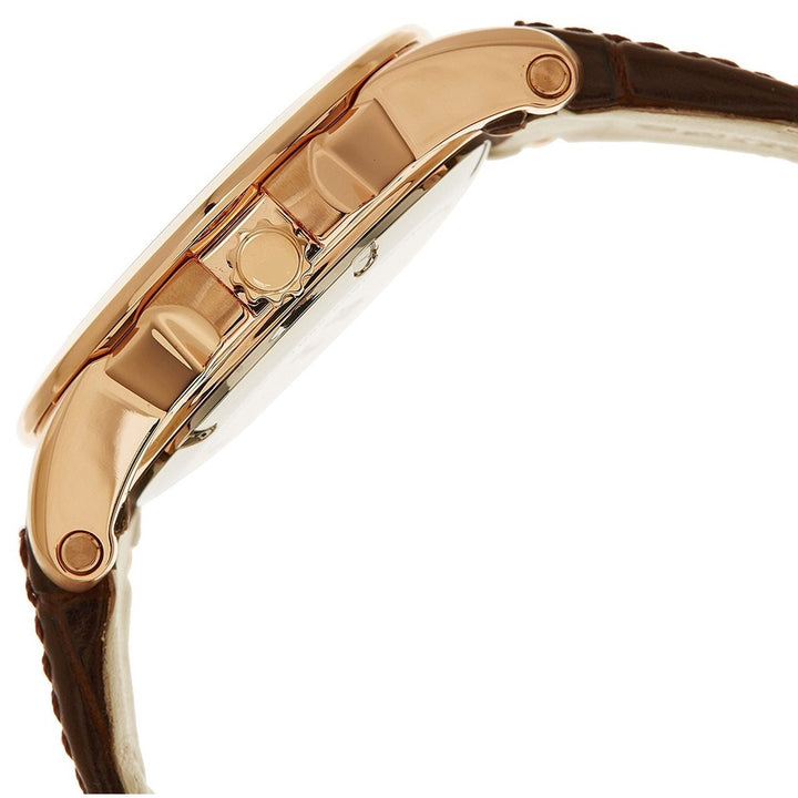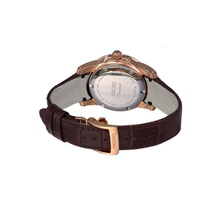 Specification: Rose Gold Colored Stainless Steel Case Brown Leather Strap Kinetic Movement Caliber 7D56 Sapphire Crystal White Dial with Rose Gold Highlights Big Calendar Window at 12 O’clock Position Perpetual Calendar...