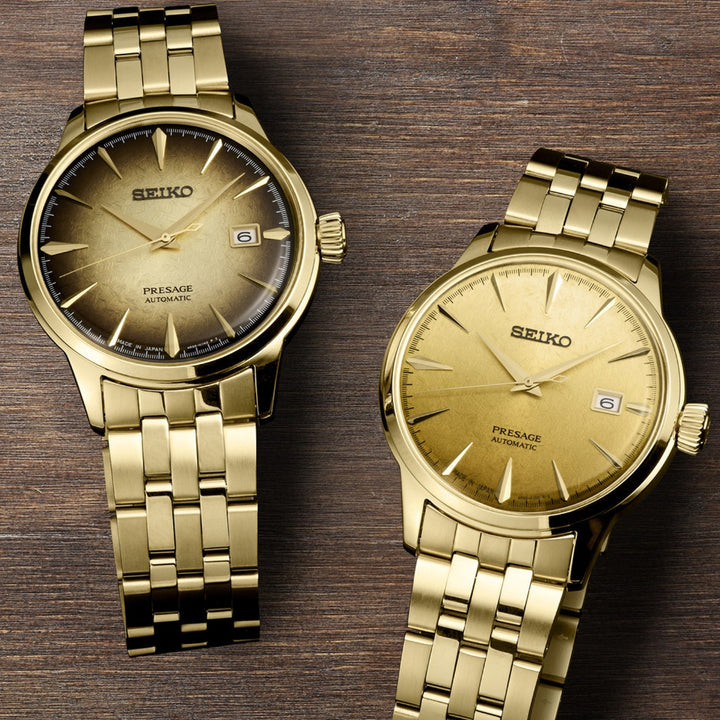 The SRPK48J1 watch from the Presage Cocktail collection is easily recognisable by its gradient dial inspired by the theme of beer cocktails. Accompanied by a gold-tone stainless steel bracelet for a dressy yet comfortable look, this automatic watch is perfect for all occasions.