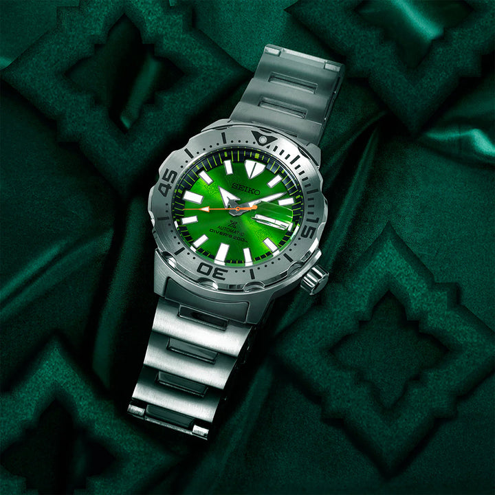 Seiko Thailand has just released the Prospex Monster Divers Asia Limited Edition SRPL41K1, which is exclusively available for the Asian market. This diver's watch uses the basic "Monster" model and has a green dial inspired by the traditional Thai art pattern, Prajam Yam.