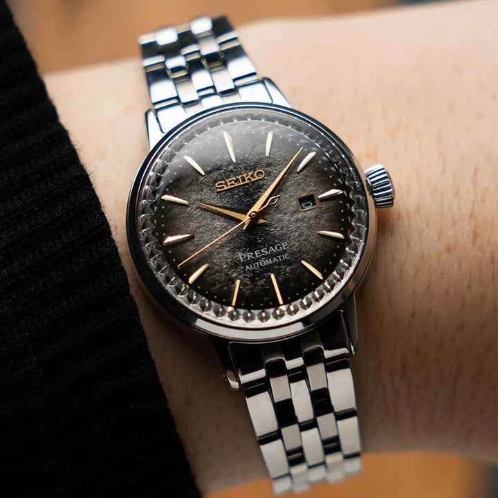 Limited edition of 6,000piecesIn collaboration with STAR BAR, two new Presage Cocktail Time watches are inspired by the beautiful scenery of Tokyo by night. The dial of each watch interprets the “Night-time Tokyo,” an original cocktail created by STAR BAR owner Hisashi Kishi, the first bartender to receive Japan’s prestigious “Contemporary Master Craftsman” award. Tokyo’s sophisticated evening lights, which Kishi captured in a cocktail glass, are now distilled in a beautiful watch dial.