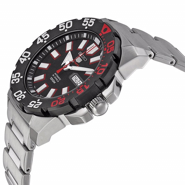 Specification: Stainless Steel Case Stainless Steel Bracelet Automatic Movement Caliber 4R36 24 Jewels Hardlex Crystal Glass Black Dial White And Red Markers And White Hands Stainless Steel Bezel With Engraved White...