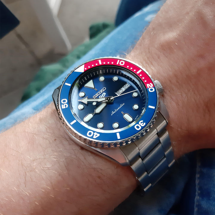 - Bezel Material : Blue & Red Ion-Plated Stainless Steel (Unidirectional Rotating, Seiko Pepsi)