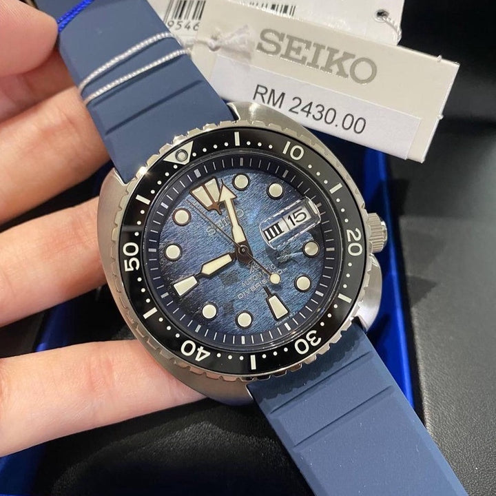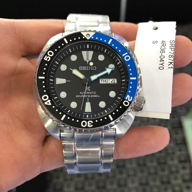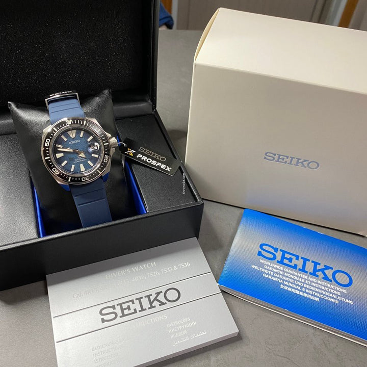 Specifications: Brand : Seiko Calibre No. : 4R35-03W0 Band Material : Blue Silicone Strap Band Length : Men-standard Case Material : Stainless-steel Case Diameter : 43.8 mm Case Thickness : 12.8...