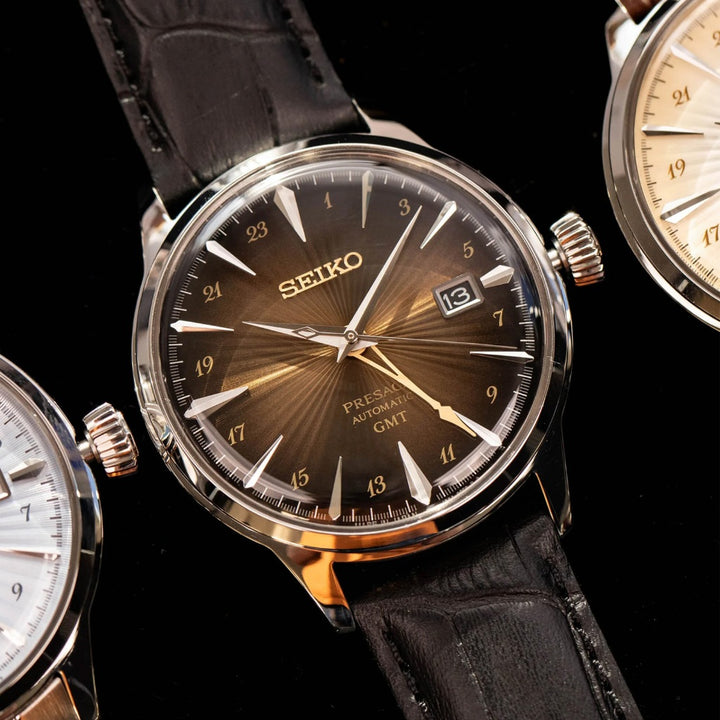 Tell time seemlessly during your travels with the Seiko Presage Cocktail Time #SSK039J1.